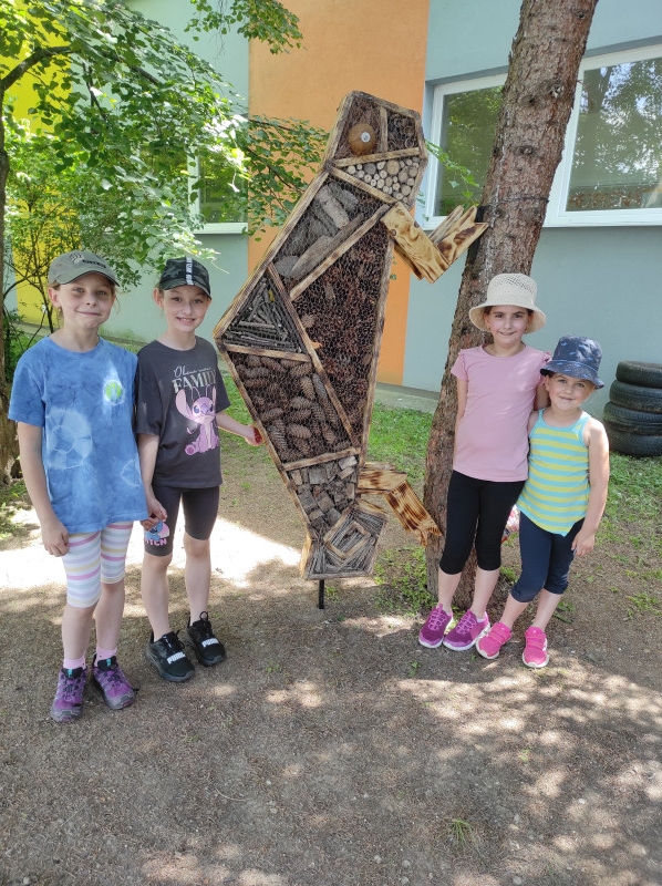 Deti z III. A zo ZŠ, Fatranská 14, Nitra vybudovali takýto skvelý hmyzí hotel v rámci projektu E /a/ ko na to?