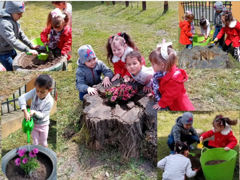 Od semienka k rastlinke- Detičky MŠ ,,Kvietok" siali semienká a zasadili kvietky, skrášlili svoj dvor.