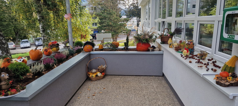 vyrezávané a maľované tekvičky vyrábali deti s rodičmi vo veku 3-6 rokov a krásne nám zdobia vstup do MŠ.