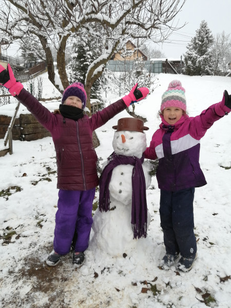 Snehuliaka sme si postavili u Babky Zlatky a dedka Juraja na záhrade chalupy.