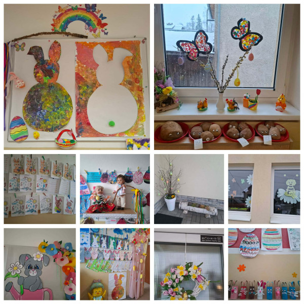 Naša škôlka je vyzdobená veselými jarnými a veľkonočnými prácami detičiek. ZŠ s MŠ Babín