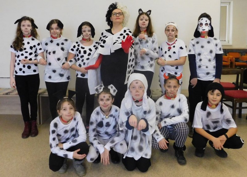 Piataci s triednou pani učiteľkou na tohtoročnom školskom karnevale