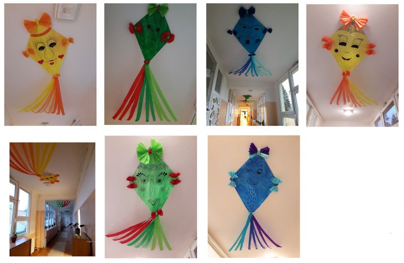 Šarkany vymaľovali deti a ozdobili sme s nimi stropy pred našimi triedami, aby sa na nás usmievali a prinášali nám energiu počas tohto ťažkého obdobia.