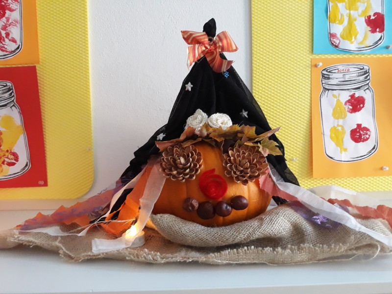 Moji najmenší šikovníci tvorili tekvičku Jesienku